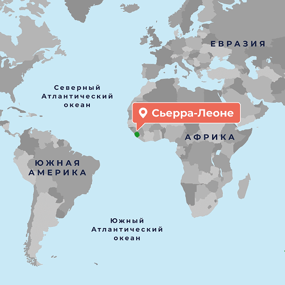 Сьерра-Леоне – государство в Западной Африке, омывается Атлантическим океаном. Численность населения 8,1 млн. человек. Официальный язык английский, большинство жителей говорит на местном языке крио. Валюта – леоне (Sierra Leonean leone).